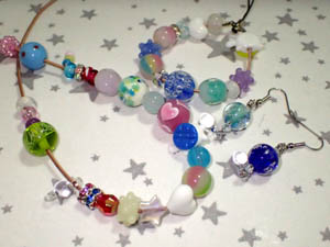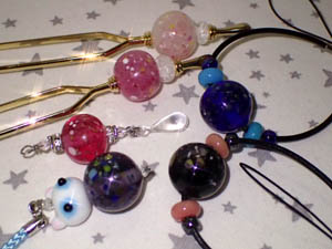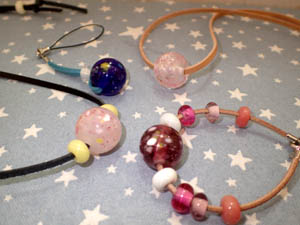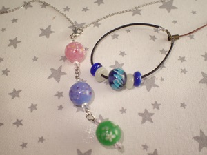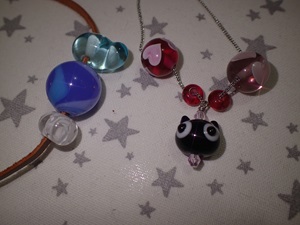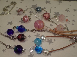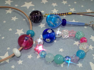 | 2025.8.8-1 つきうさぎさん 初めてとんぼ玉とアクセサリーを作って下さいました |