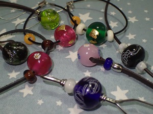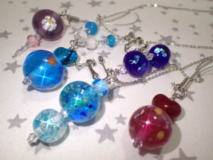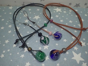 | 2025.2.24 つむぎ一同さん 気に入ったとんぼ玉を沢山選んでアクセアリーに仕上げて下さいました |