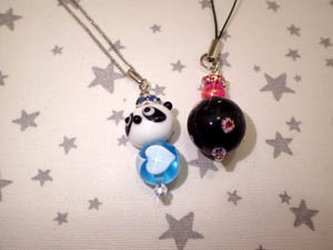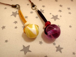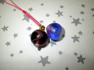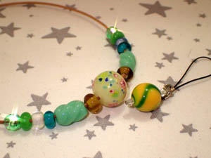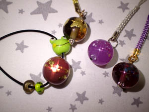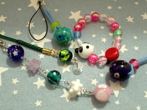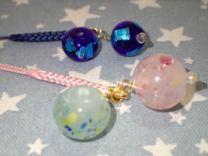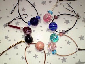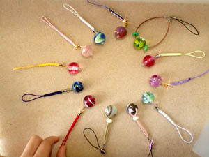 | 2025.8.3-2 しょうじさんとみおさん 気に入ったとんぼ玉でストラップを作って下さいました |