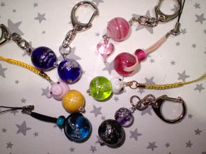 | 2025.3.30-1 ボブファミリーさん 可愛いとんぼ玉でキーホルダーを作って下さいました |