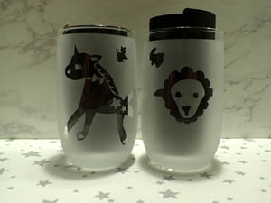 | 2025.4.14 とよまめくん 考えて来てくれた模様でグラスを楽しく作って下さいました |