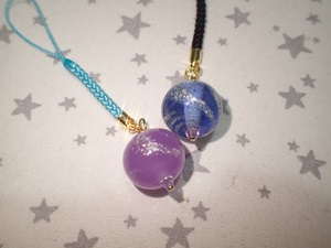 | 2025.8.3-2 しょうじさんとみおさん 気に入ったとんぼ玉でストラップを作って下さいました |